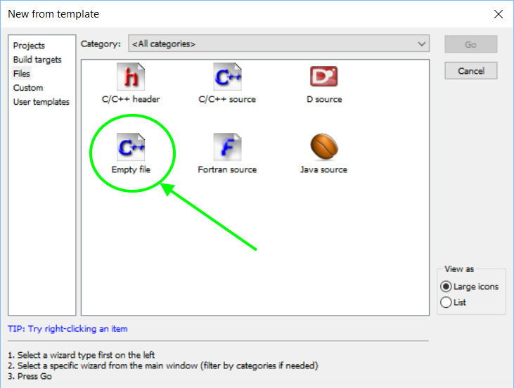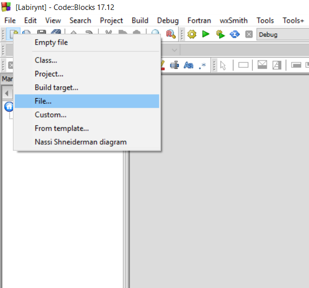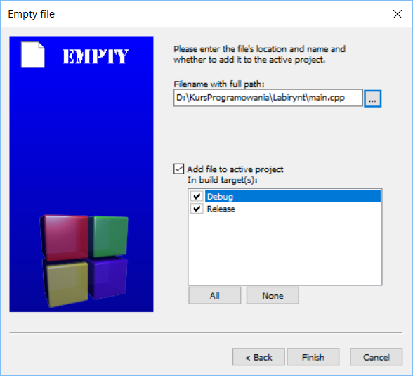 Tutaj wybieramy empty file. Jest opcja source file, ale specjalnie jej nie żeby coś wyjaśnić.
